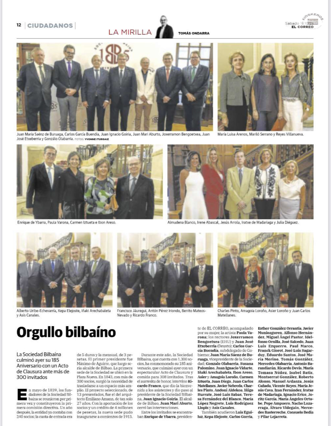 • 2025-10-18 El Correo. Clausura 185 Aniversario Sociedad Bilbaína